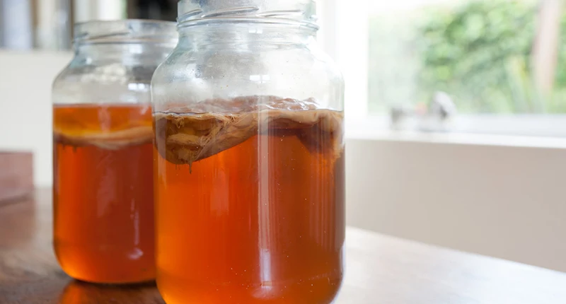 Kombucha is called a thick, slimy, brown cover jelly mass that floats on the surface of sweetened liquid, which after fermentation is used as a tea drink, but also as a sour liquid that can be used as a condiment instead of vinegar. The whole process takes place in the glass jar.